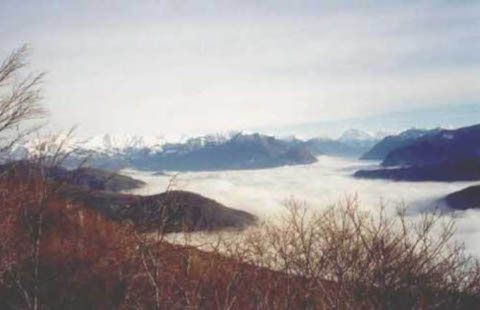 Dopo 2 km la strada si interrompe e sulla destra, sotto un grande agrifoglio, tra una breccia aperta fra alcuni ruderi, inizia un ripido sentiero che conduce all'Alpe Porscì (m 737). Si scende fino all'Alpe del Campogino - in dialetto "Grop" - (m 665), dove si incontra una strada sterrata che conduce prima ad una pinetina e, quindi, nuovamente alla vecchia strada militare; prenderla in salita, fino ad arrivare al punto di partenza.